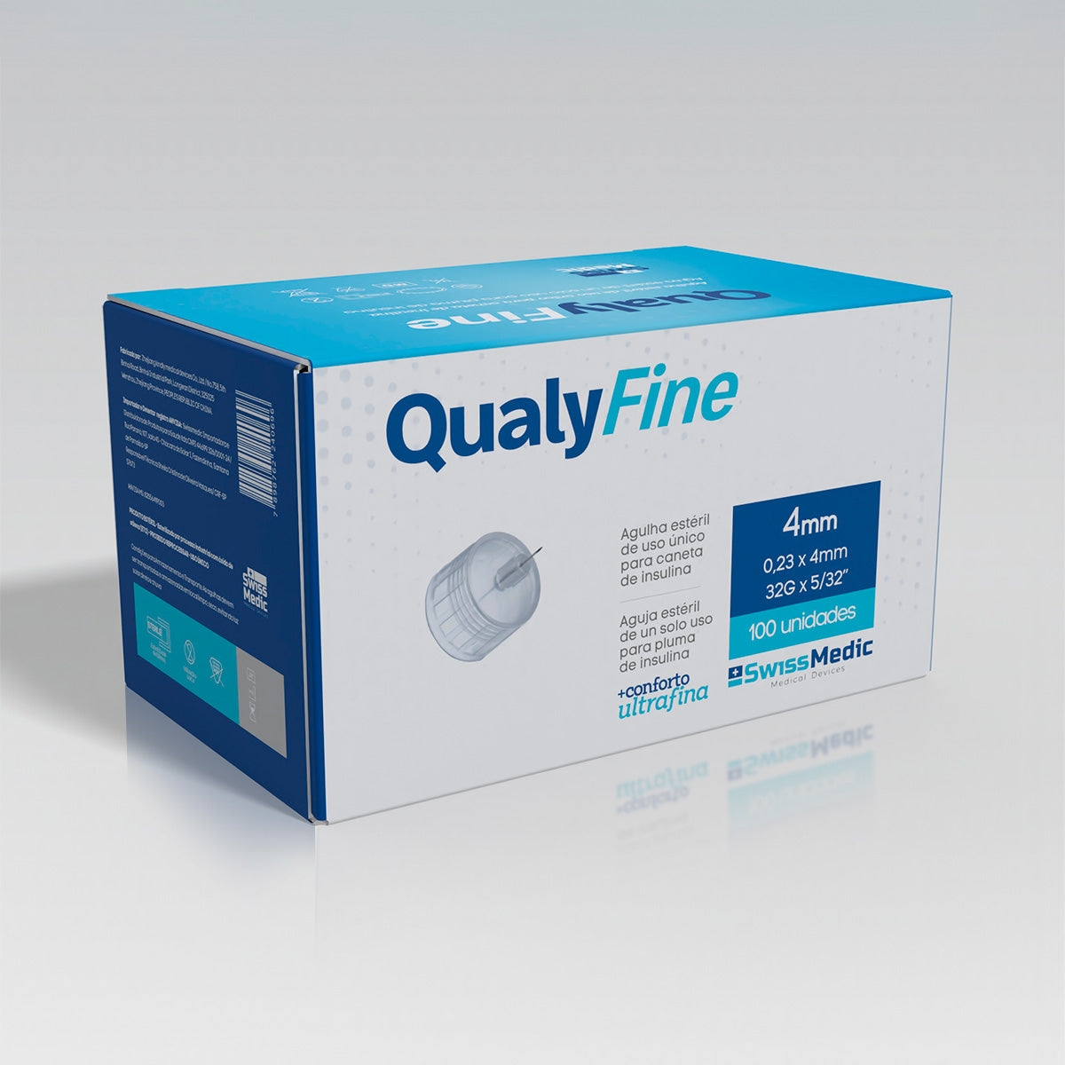 Linha com disponibilidade de agulhas mais curtas, que permitem a aplicação da insulina em ângulo de 90°, sem a necessidade da prega cutânea.